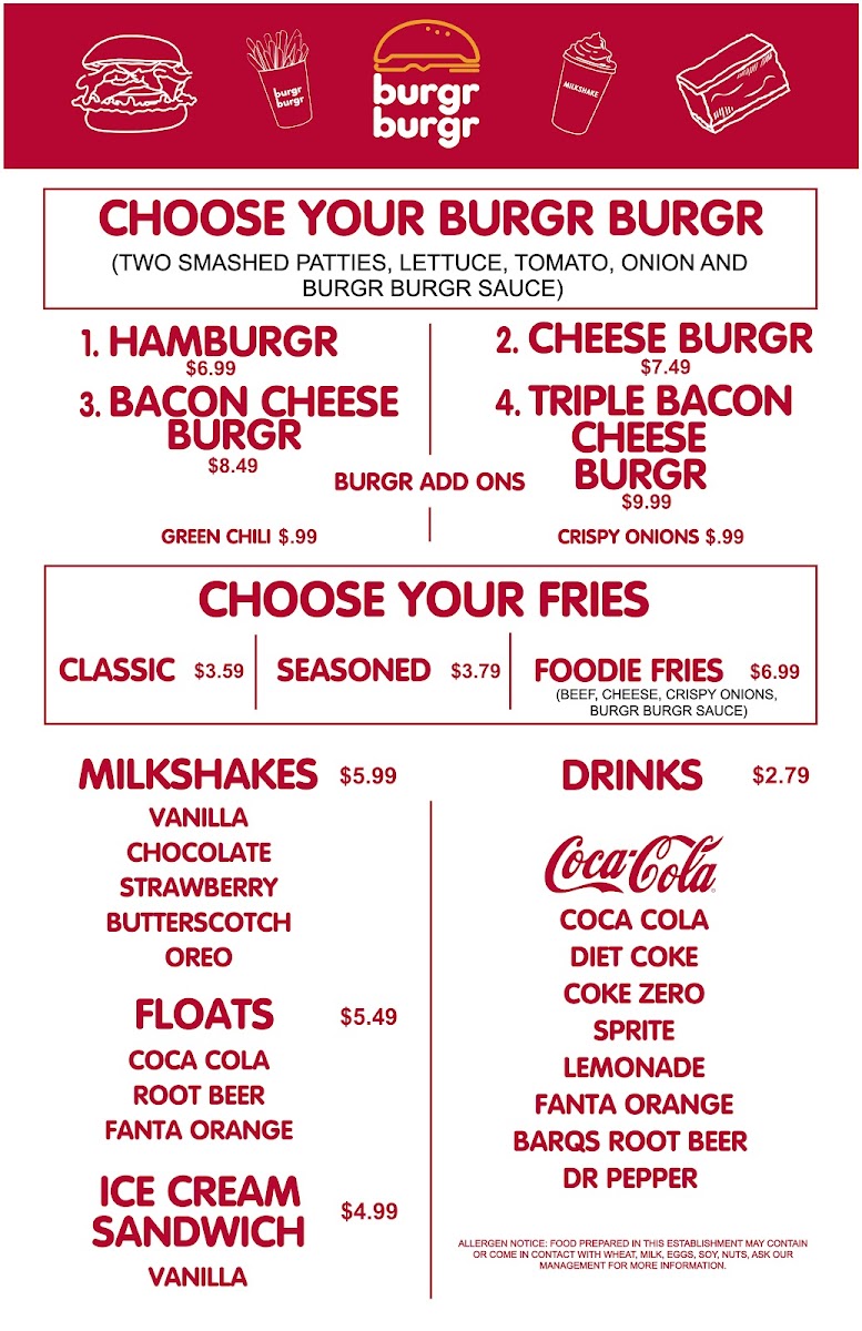 With such a diverse and delicious menu, Burgr Burgr ensures there's something for everyone, whether you're in the mood for a classic burger or a more indulgent treat. The variety of options, from burgers to fries to shakes, makes it an ideal spot for a casual yet satisfying dining experience.